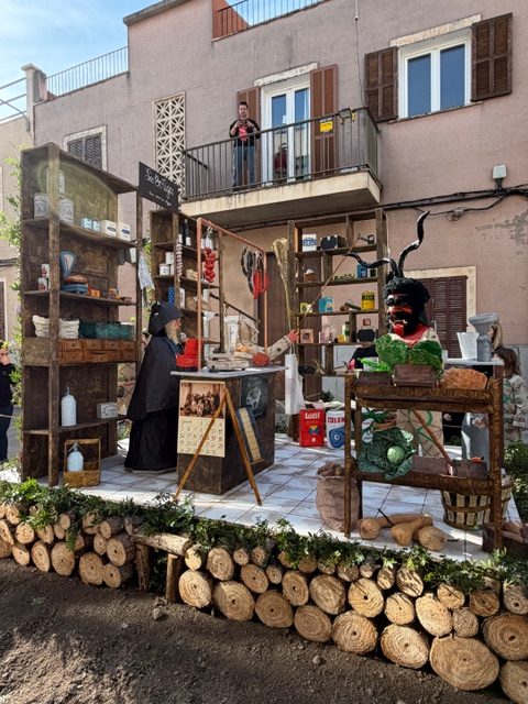 Durant el recorregut, vam poder veure els foguerons pels carrers i observar les façanes de les cases decorades amb l’enramellat típic d’aquestes festes. Ens va cridar molt l’atenció la creativitat de les decoracions i l’ambient festiu que es respirava a tot el poble.