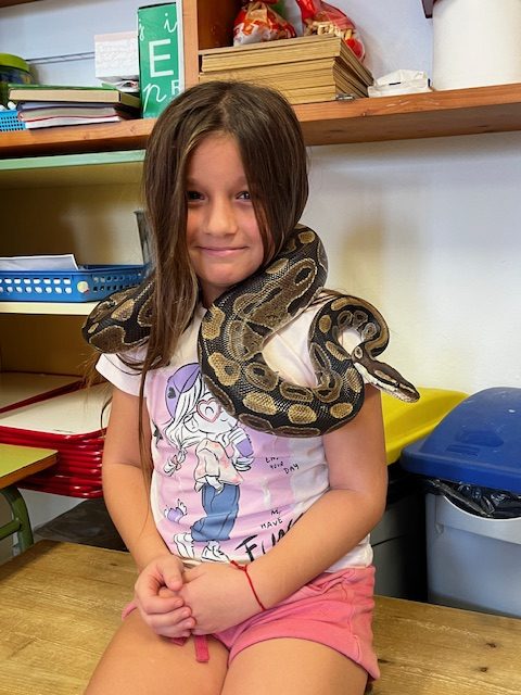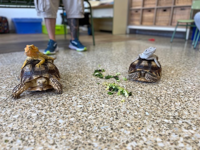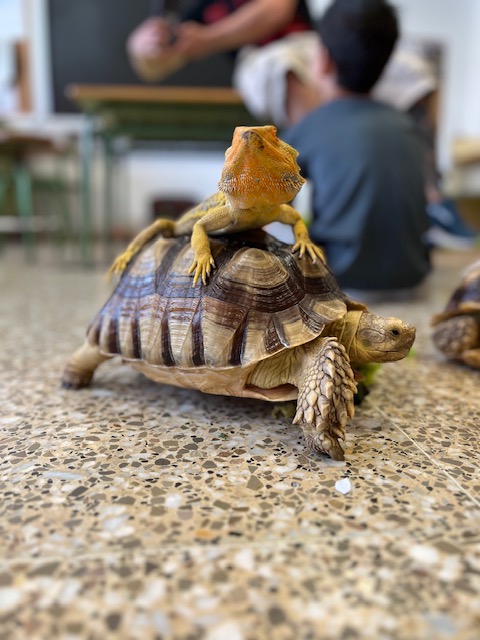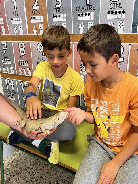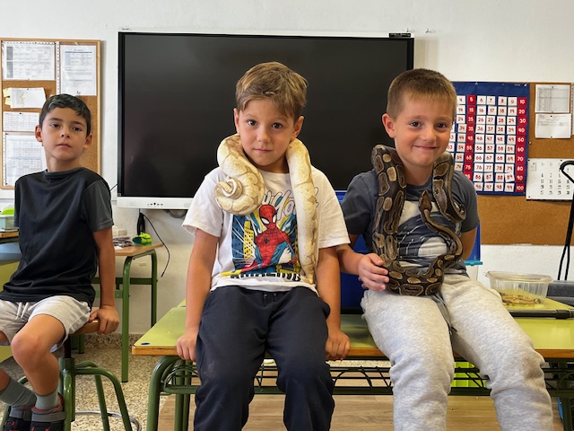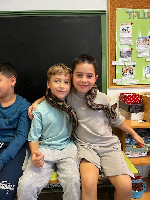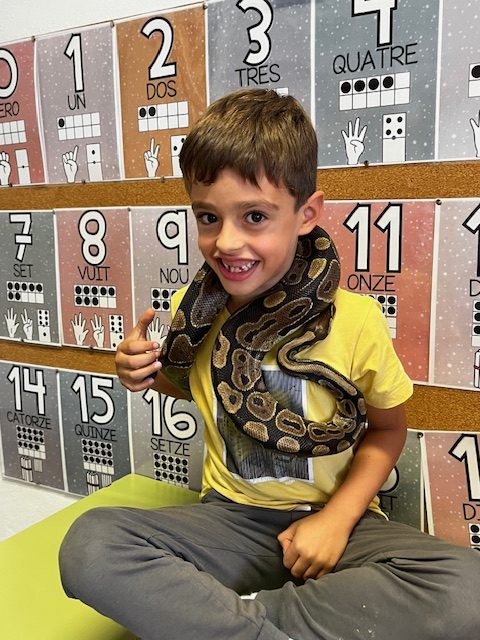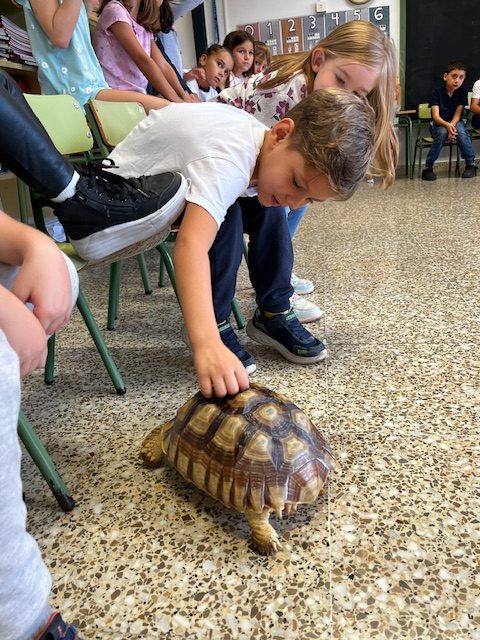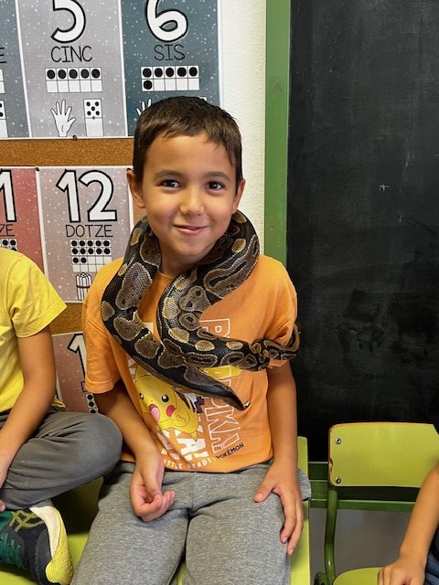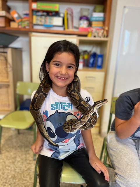 - Una visita molt especial: El moment més emocionant va ser quan el pare d’un company del grup de segon A ens van visitar acompanyat d’animals de veritat! Vam poder veure de ben a prop i fins i tot tocar, serps, tortugues i altres animalons. Va ser una manera molt autèntica de conèixer més informació sobre els rèptils.
