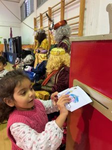 Durant la seva visita, vam tenir l’oportunitat de fer entrega de les cartes dels Reis que havíem preparat amb molta cura a classe. Amb gran entusiasme, vam fer arribar les nostres cartes a la bústia real.